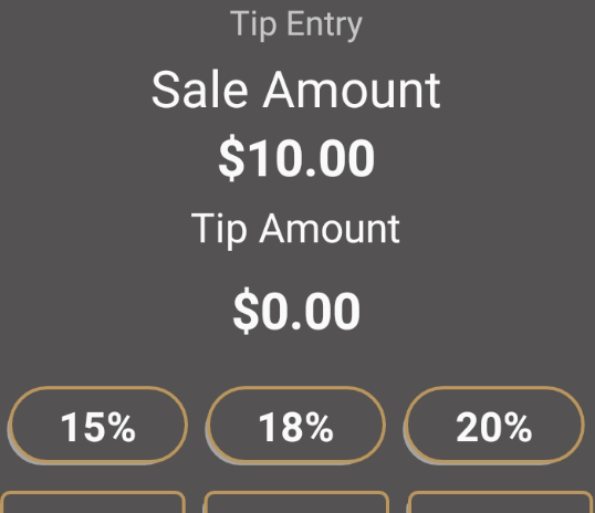 NOTE: At any time, the customer can manually enter a dollar and cents value for the tip, regardless of the percentage options that are available.